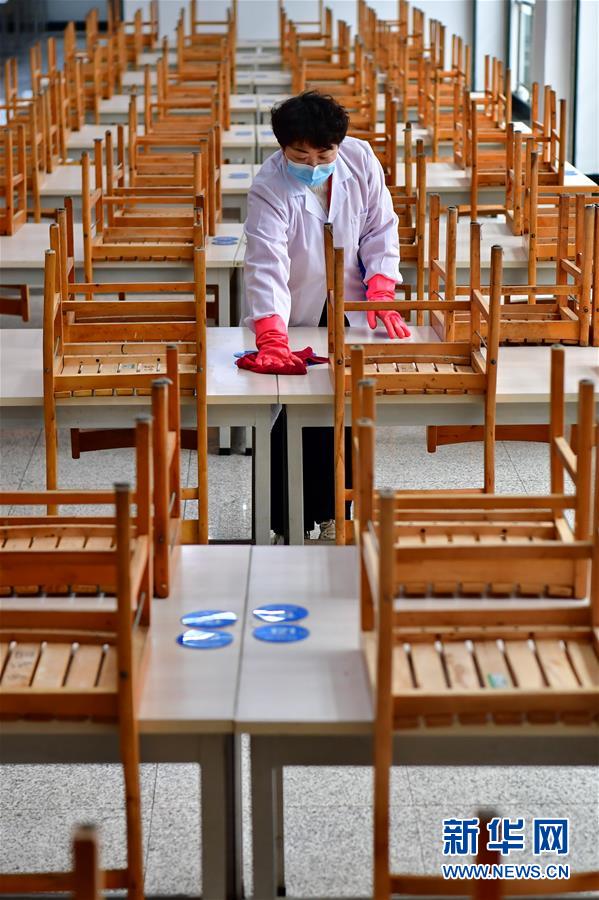 4月9日,山西农业大学图书馆的工作人员在擦拭书桌。 据山西省教育厅消息,山西省高校本硕博毕业年级将于4月10日起错峰分批开学。山西省各高校全面推进封闭管理、分散住宿、教职工培训、公共场所消杀等各项开学准备工作,保障学生安全复课。 新华社记者 曹阳 摄