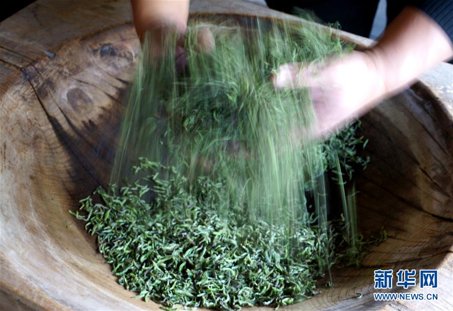 4月9日,制茶师在对揉捏好的茶青进行解块。 近日,在福建省武夷山市星村镇桐木村出产的金骏眉进入采摘制茶季。武夷山红茶制作历史悠久,金骏眉是武夷山红茶工艺创新中的代表产品。 新华社记者 贺灿铃 摄
