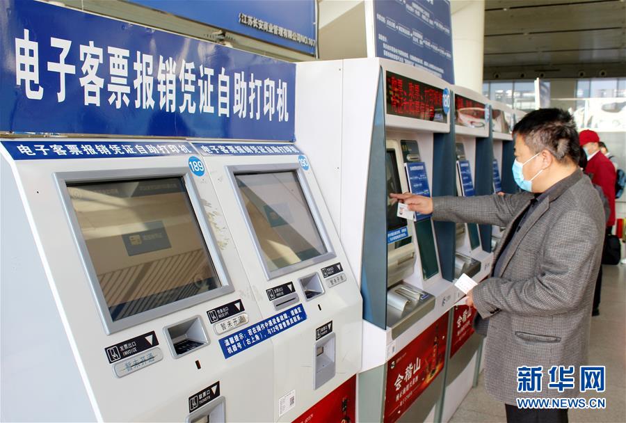 4月9日,旅客在铁路常州站自助设备上打印电子客票报销凭证。 4月10日零时起,全国铁路将实施新的列车运行图。 新华社发(王启明 摄)