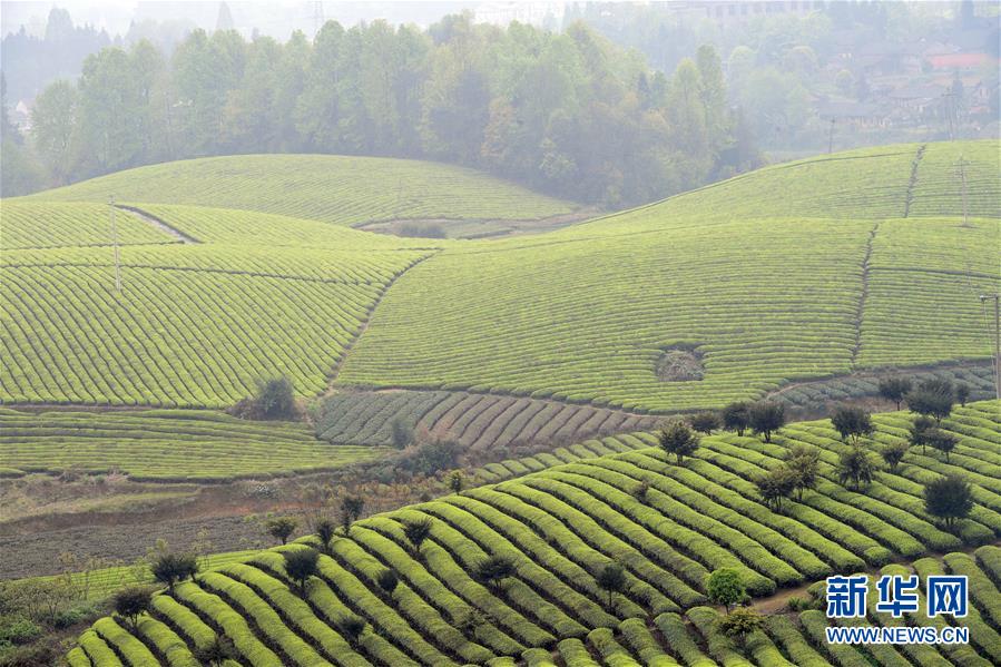 贵州省湄潭县永兴镇万亩茶海(4月9日摄)。 春季里,位于贵州省湄潭县永兴镇的万亩茶海景色怡人。永兴万亩茶海连片种植面积达4.3万亩,是湄潭县标志性景观之一。 新华社记者 杨楹 摄