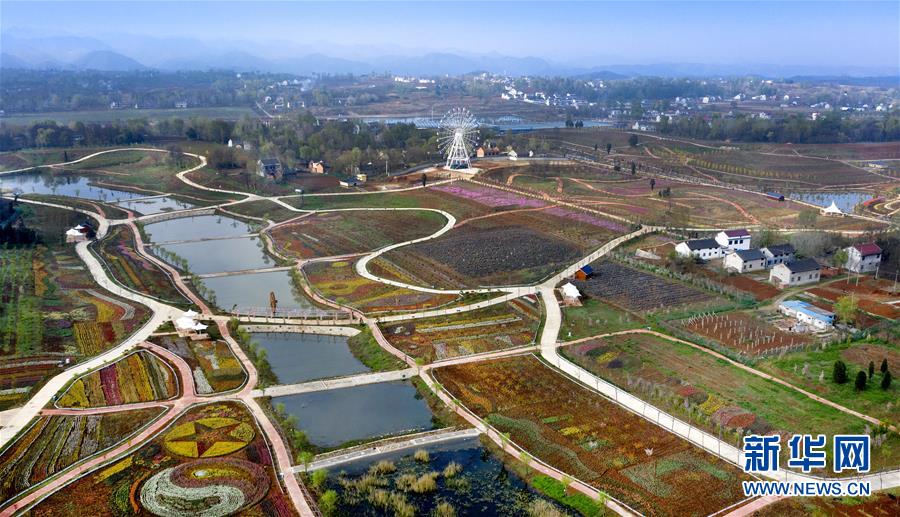 4月11日拍摄的洛南县锦绣大地花博园(无人机照片)。新华社记者 陶明 摄