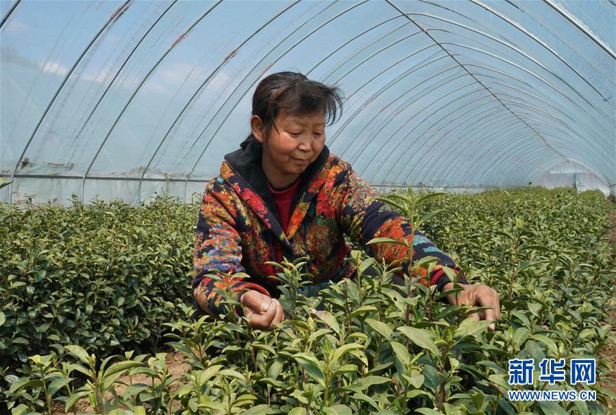 4月11日,灵寿县南营乡东寺岭村盘龙湾茶叶专业合作社的社员在茶园采摘茶叶。 近日,地处太行山区的河北省灵寿县南营乡的茶园开园采茶。灵寿县南营乡的茶树于1998年从杭州移植而来,通过“公司+农户+合作社+基地”的方式发展,建成500多亩的高标准茶叶基地,形成产、供、销一条龙的集约化经营方式,有效带动当地近千余村民脱贫致富。 新华社记者 杨世尧 摄