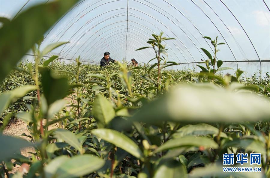 4月11日,灵寿县南营乡东寺岭村盘龙湾茶叶专业合作社的社员在茶园采摘茶叶。 近日,地处太行山区的河北省灵寿县南营乡的茶园开园采茶。灵寿县南营乡的茶树于1998年从杭州移植而来,通过“公司+农户+合作社+基地”的方式发展,建成500多亩的高标准茶叶基地,形成产、供、销一条龙的集约化经营方式,有效带动当地近千余村民脱贫致富。 新华社记者 杨世尧 摄