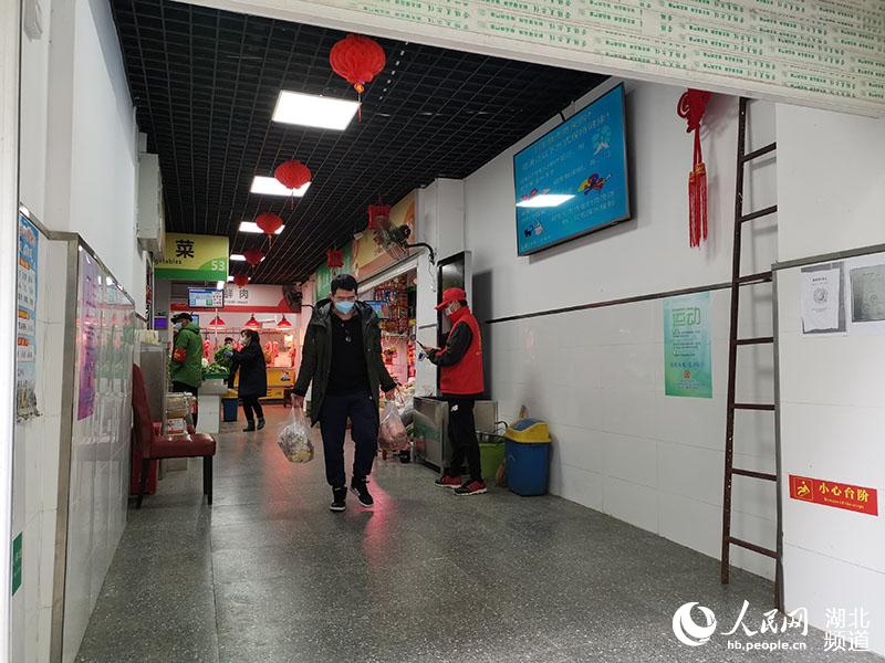 兰陵路菜场,需测量体温才能进入。(周雯)