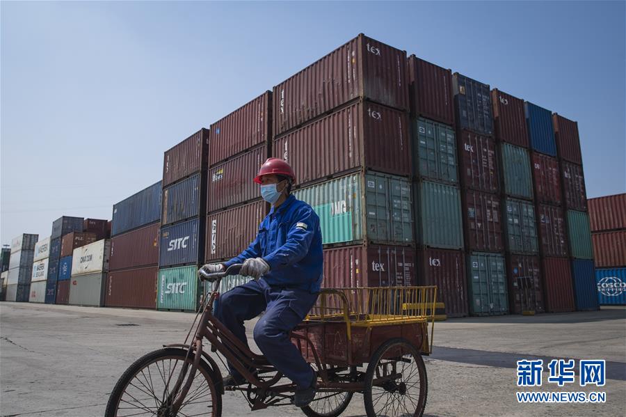 4月12日,工人在武汉长江中游航运中心核心港阳逻港作业。 新华社记者肖艺九摄 图片来源:新华网