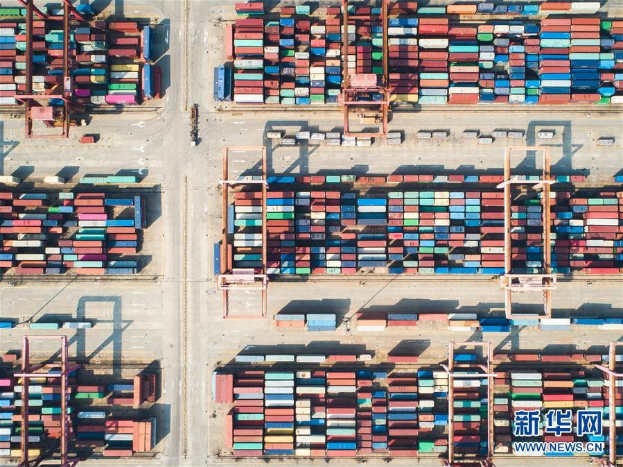 这是4月12日拍摄的武汉长江中游航运中心核心港阳逻港(无人机照片)。 新华社记者肖艺九摄 图片来源:新华网