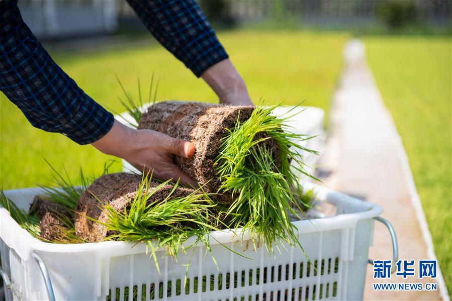 4月12日,在宁乡双江口镇育秧工厂,村民搬运培育好的早稻秧苗。 春耕时节,湖南宁乡市双江口镇水稻种植联合社的集中育秧工厂抢抓农时,抓紧育秧育苗工作。据了解,该育秧工厂可为当地农民提供种子催芽和育秧等服务,采用这种工厂化育秧比传统育秧每亩要节省100到150元。 新华社发(陈思汗摄)