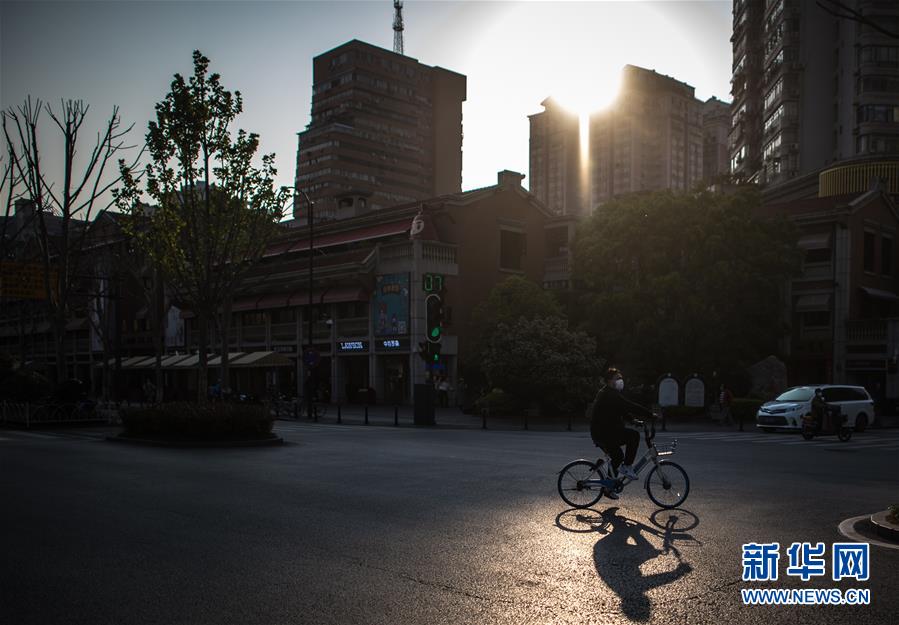 4月12日,市民在吉庆街附近骑单车。 随着疫情防控形势好转,武汉人民的生活日常正在逐渐恢复。 新华社记者 肖艺九 摄