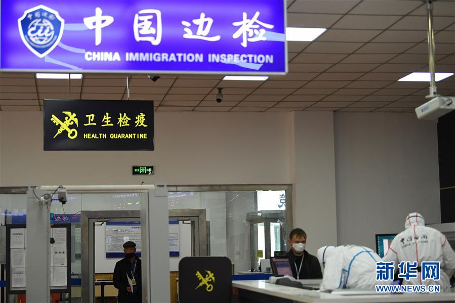 4月11日,在阿拉山口公路口岸旅检大厅,工作人员依规检查哈萨克斯坦货车司机证件。 阿拉山口口岸是中欧班列向西出境的主要通道。面对疫情在境外的蔓延,当地海关、边检等多部门对入境车辆人员信息共享,精准研判风险信息,同时严格落实体温检测、健康申报、交通工具消毒等工作,严防境外疫情输入。 新华社记者 阿依努尔 摄