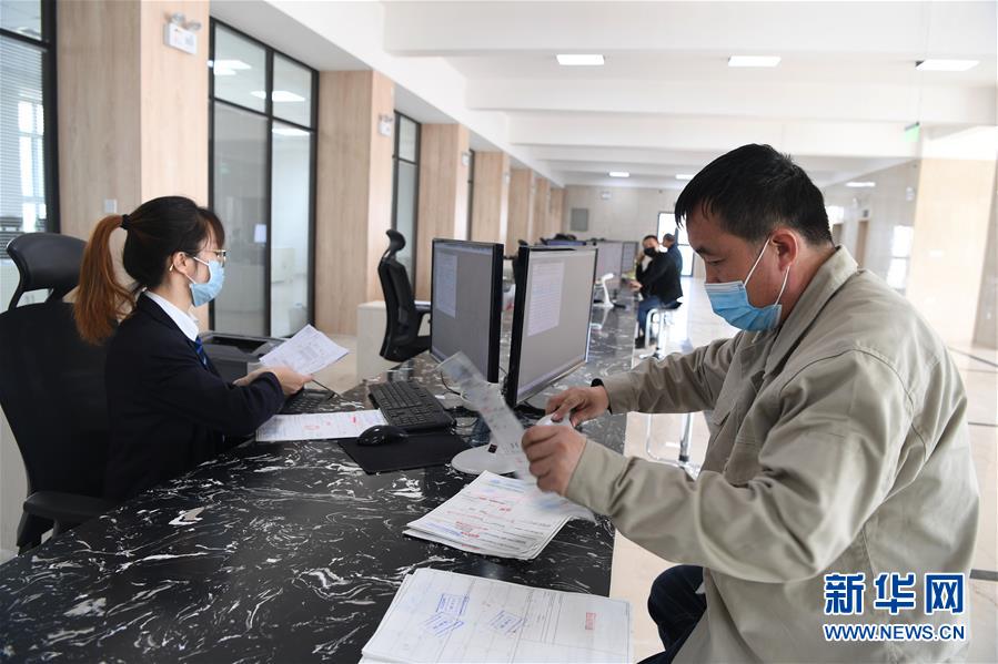 4月11日,在阿拉山口铁路国际联运大楼,一名企业报检员在办理通关手续。 阿拉山口口岸是中欧班列向西出境的主要通道。面对疫情在境外的蔓延,当地海关、边检等多部门对入境车辆人员信息共享,精准研判风险信息,同时严格落实体温检测、健康申报、交通工具消毒等工作,严防境外疫情输入。 新华社记者 沙达提 摄