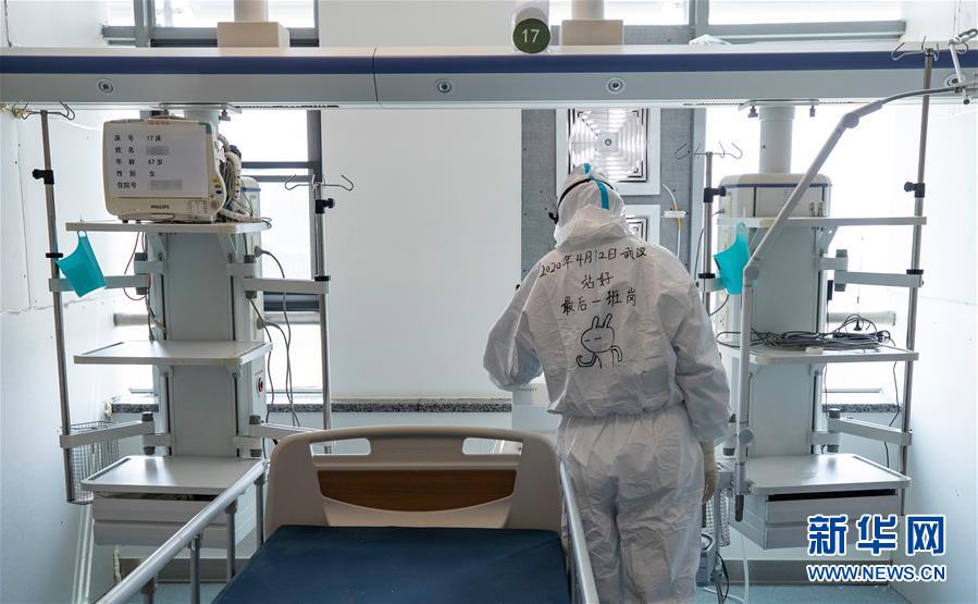 4月12日,在华中科技大学同济医学院附属同济医院中法新城院区C栋9层病区,所有病人均被转出后,一名北京协和医院医疗队队员在整理新冠肺炎危重症患者使用过的医疗器械。 新华社记者 沈伯韩 摄