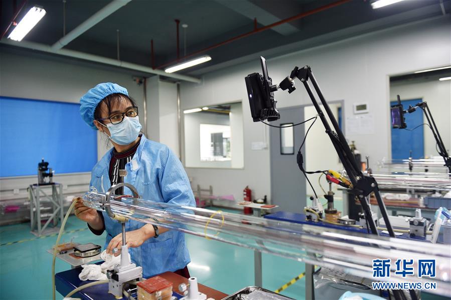 4月13日,吉林省一家民营企业的工人在生产激光管。新华社记者 林宏 摄