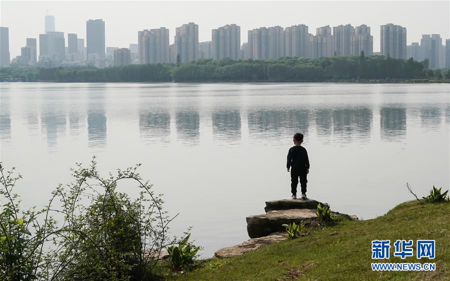 4月13日,一名小朋友在武汉东湖绿道水边看风景。 随着疫情防控形势好转,武汉绿道上健身休闲的人渐渐多了起来。 新华社记者 程敏 摄