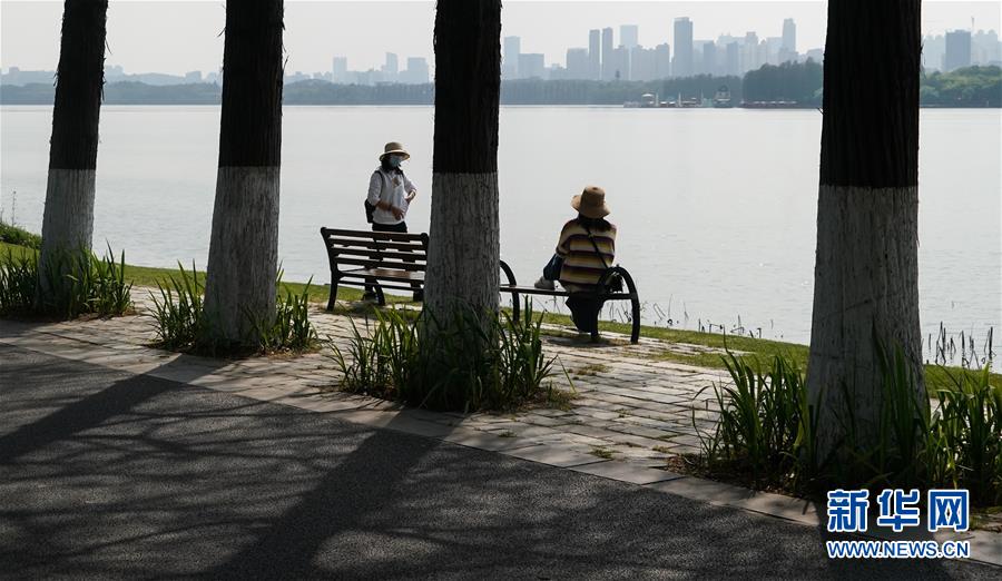 4月13日,人们在武汉东湖绿道休闲。 随着疫情防控形势好转,武汉绿道上健身休闲的人渐渐多了起来。 新华社记者 程敏 摄