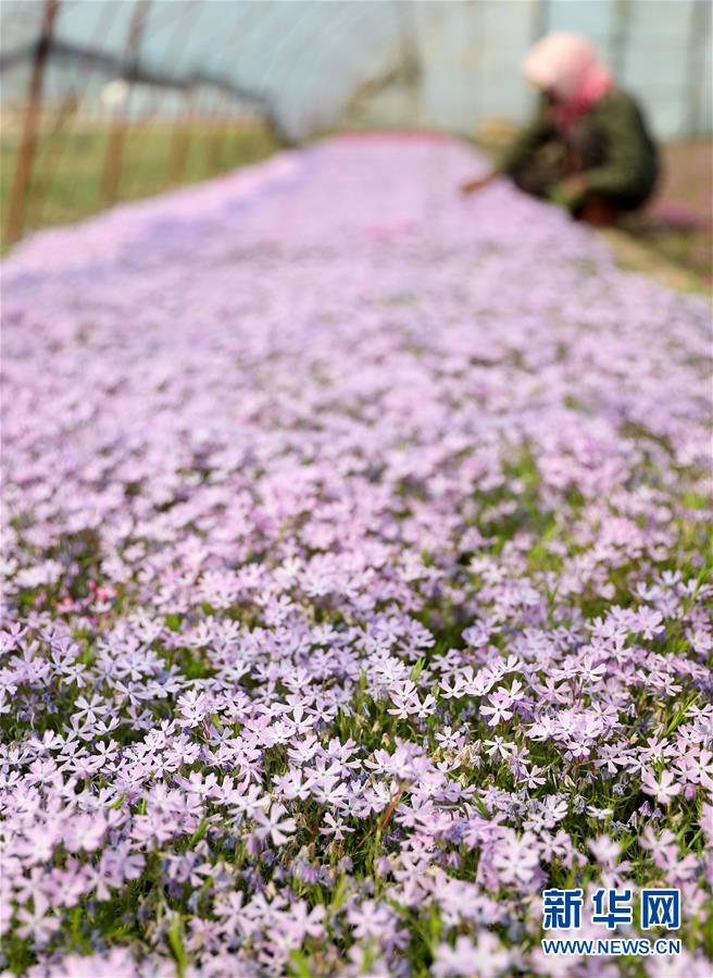 4月13日,在八角台街道雅化村花圃内,花农为宿根花卉除草。新华社记者 姚剑锋 摄