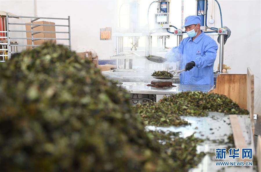 4月12日,福建省政和云根茶业有限公司员工在制作茶饼。 新华社记者 林善传 摄