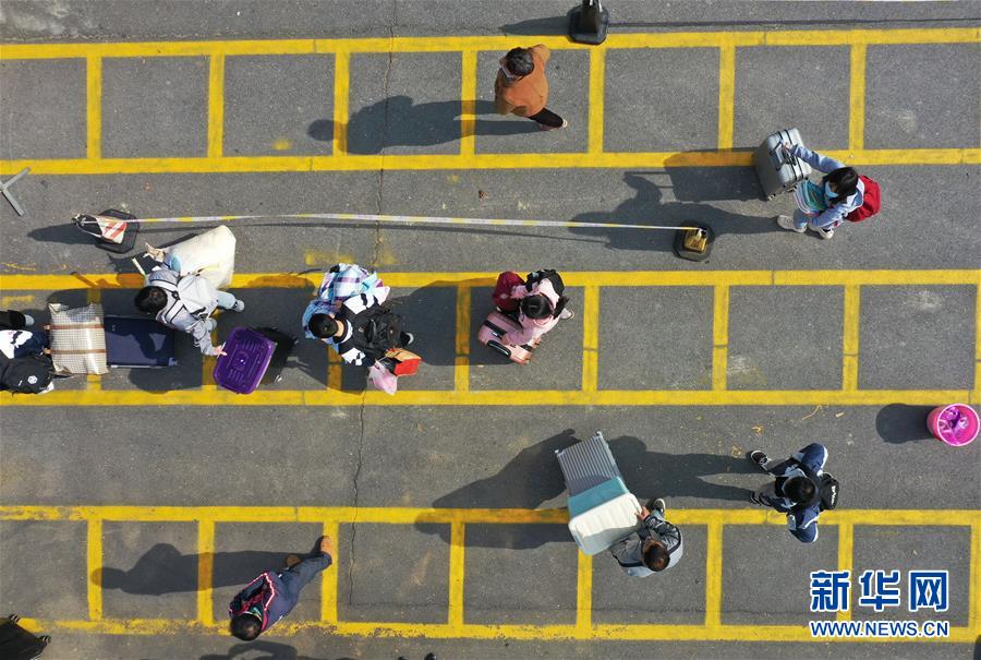 4月13日,在湖南永州道县第一中学校门外,高二年级学生进入校园(无人机照片)。新华社发(何红福 摄)