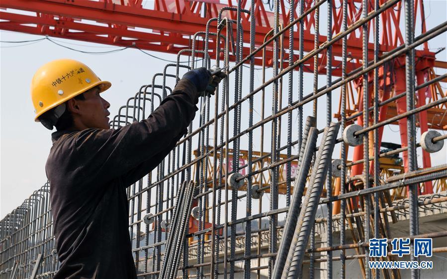 4月13日,工人在云南墨临(墨江——临沧)公路土建8标2号制梁厂绑扎钢筋。