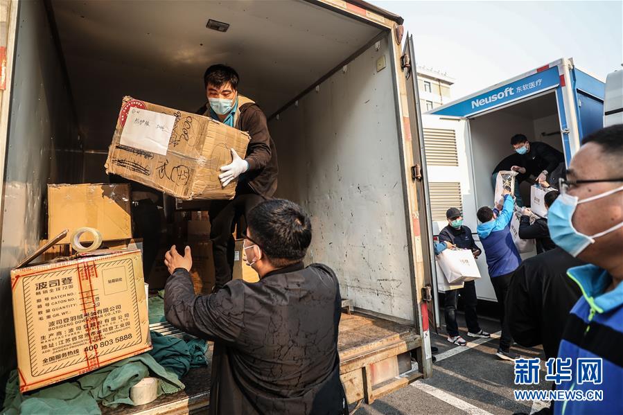 4月13日,出发前,工作人员在搬运驰援黑龙江省绥芬河市的物资。新华社记者 潘昱龙 摄