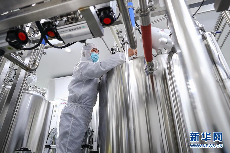 4月10日,工作人员在国药集团中国生物新冠疫苗生产基地尚未投产的新型冠状病毒灭活疫苗生产车间内调试设备。 记者4月14日从国务院联防联控机制科研攻关组获悉,我国两款新冠病毒灭活疫苗获得国家药品监督管理局许可启动一二期合并的临床试验,成为最先获得临床研究批件的采用“灭活”技术路线的新冠病毒疫苗。 新华社记者 张玉薇 摄