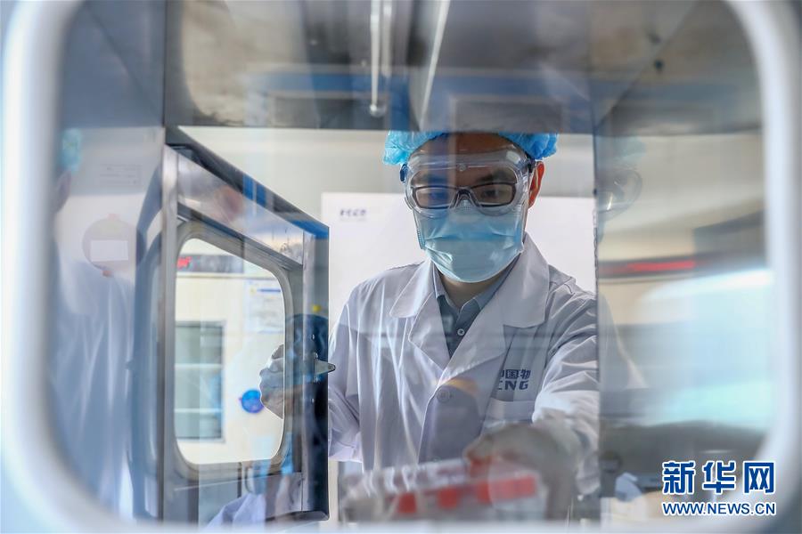 4月11日,工作人员在国药集团中国生物新冠疫苗生产基地质量检定部门从传递窗拿取新型冠状病毒灭活疫苗样品。 记者4月14日从国务院联防联控机制科研攻关组获悉,我国两款新冠病毒灭活疫苗获得国家药品监督管理局一二期合并的临床试验许可,相关临床试验同步启动。这是首批获得临床研究批件的新冠病毒灭活疫苗。 新华社记者 张玉薇 摄