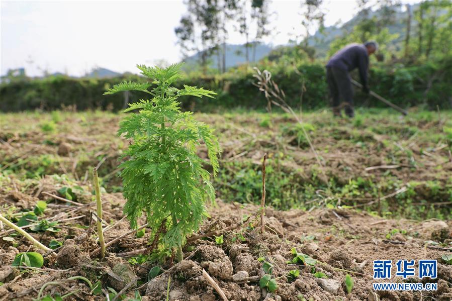 村民在青蒿种植基地除草(4月13日摄)。 近年来,广西融安县依托“公司+基地+科研单位+合作社+农户”的模式,大力发展青蒿种植产业,青蒿种植逐渐成为山区贫困农民脱贫致富的产业之一。 新华社记者 崔博文 摄