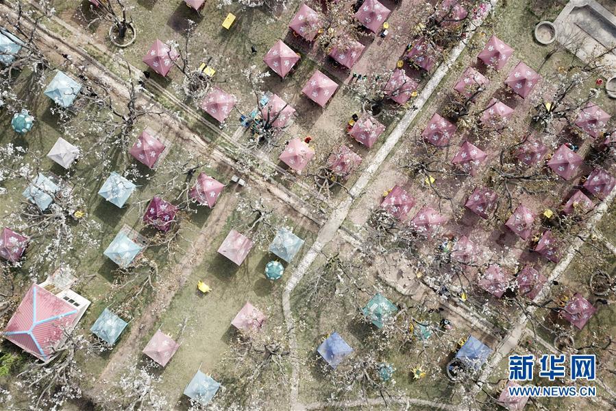 这是4月14日在皋兰县什川镇拍摄的什川古梨园(无人机照片)。新华社记者 范培珅 摄