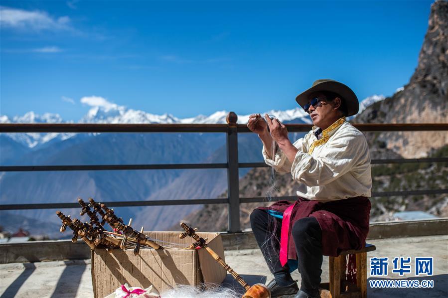 3月14日,斯那定主在家里屋顶制作弦子。新华社记者胡超 摄