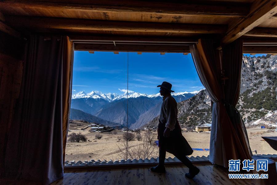 3月14日,斯那定主走在自家新建好的民宿里。新华社记者胡超 摄