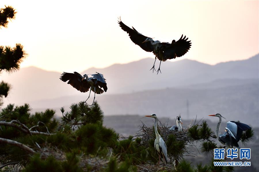 这是在吕梁市方山县积翠乡拍摄的苍鹭(4月14日摄)。新华社记者 曹阳 摄