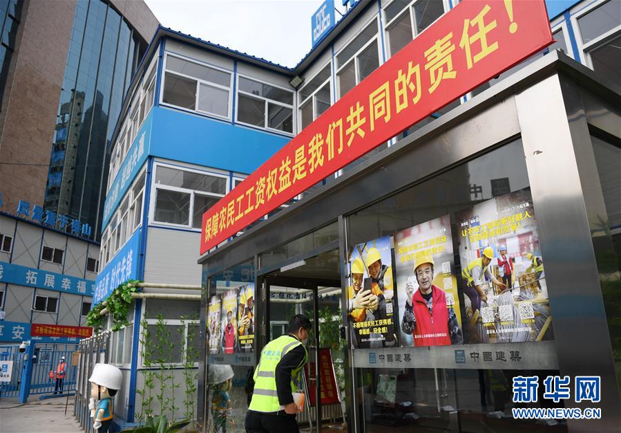 北京市东城区一处施工工地张贴有《保障农民工工资支付条例》宣传海报和标语(4月15日摄)。 新华社记者 张晨霖 摄