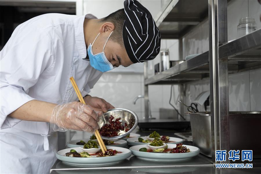 4月15日,成都市一家川菜餐厅的厨师在准备分餐制菜品。
