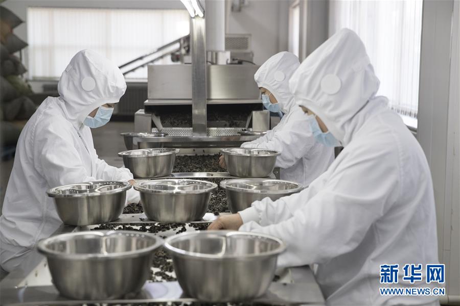 4月15日,黑龙江省维多宝食品股份有限公司工人在生产车间内筛选木耳。新华社发(张涛 摄)