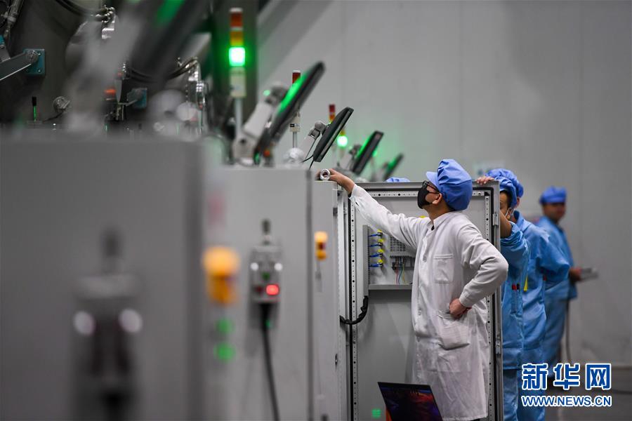 4月15日,包头美科硅能源有限公司的技术人员在生产车间内检查单晶炉的运行情况。 新华社记者 彭源 摄