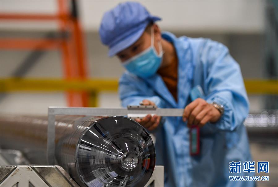 4月15日,包头美科硅能源有限公司的工作人员在测量晶棒的直径。新华社记者 彭源 摄