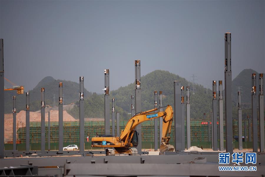4月15日,施工机械在贵州宝能汽车产业园项目现场施工。新华社记者 刘续 摄