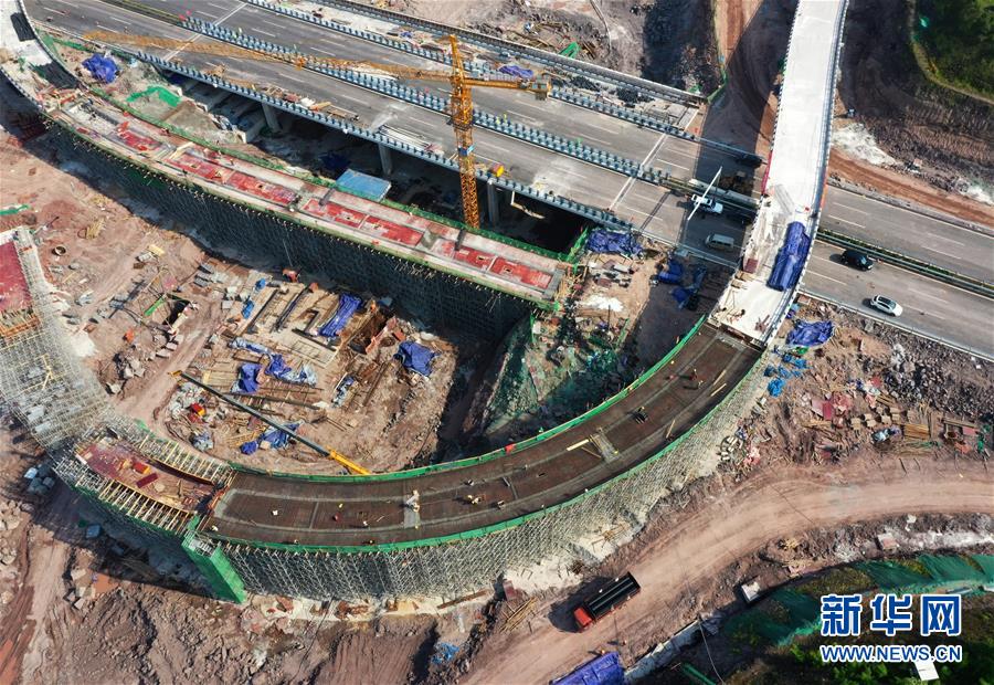 这是4月15日拍摄的重庆高新区华岩隧道西延伸段四标段施工现场(无人机照片)。新华社记者 王全超 摄