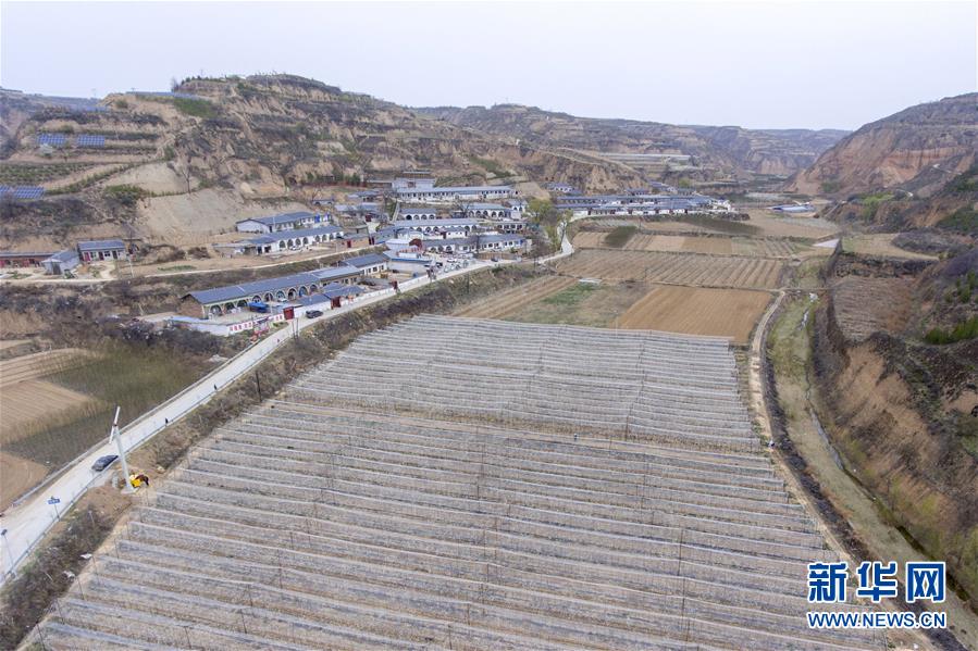 这是4月15日拍摄的峪里村的一处玉露香梨密植园(无人机照片)。 新华社记者 杨晨光 摄