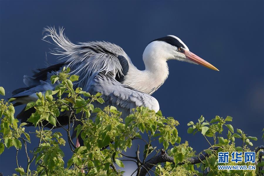 4月15日,一只苍鹭在林间栖息。