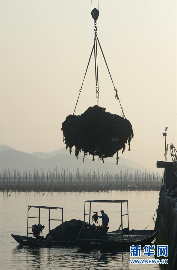 近日,福建省霞浦县长春镇迎来海带收获季。长春镇目前海带养殖面积2万余亩,海带养殖是当地渔民增收致富的重要产业。 新华社记者 贺灿铃 摄