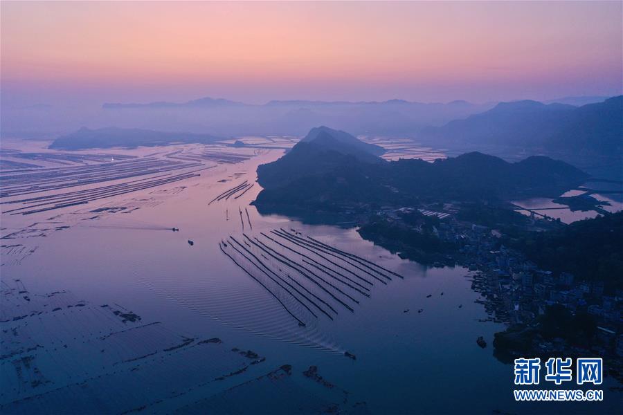 这是4月16日清晨拍摄的福建省霞浦县长春镇海带养殖区(无人机照片)。