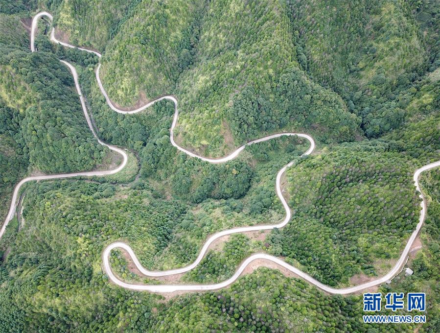 这是广西金秀瑶族自治县金秀镇境内的乡村道路(2018年8月2日摄,无人机照片)。新华社记者 陆波岸 摄