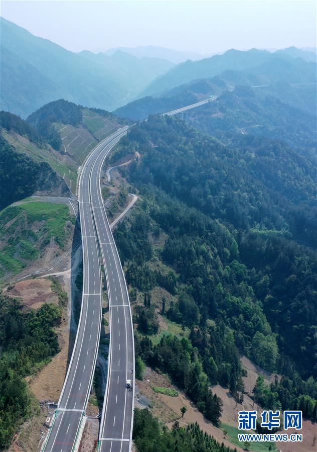 这是4月16日拍摄的宣鹤高速公路(无人机照片)。新华社发(宋文 摄)