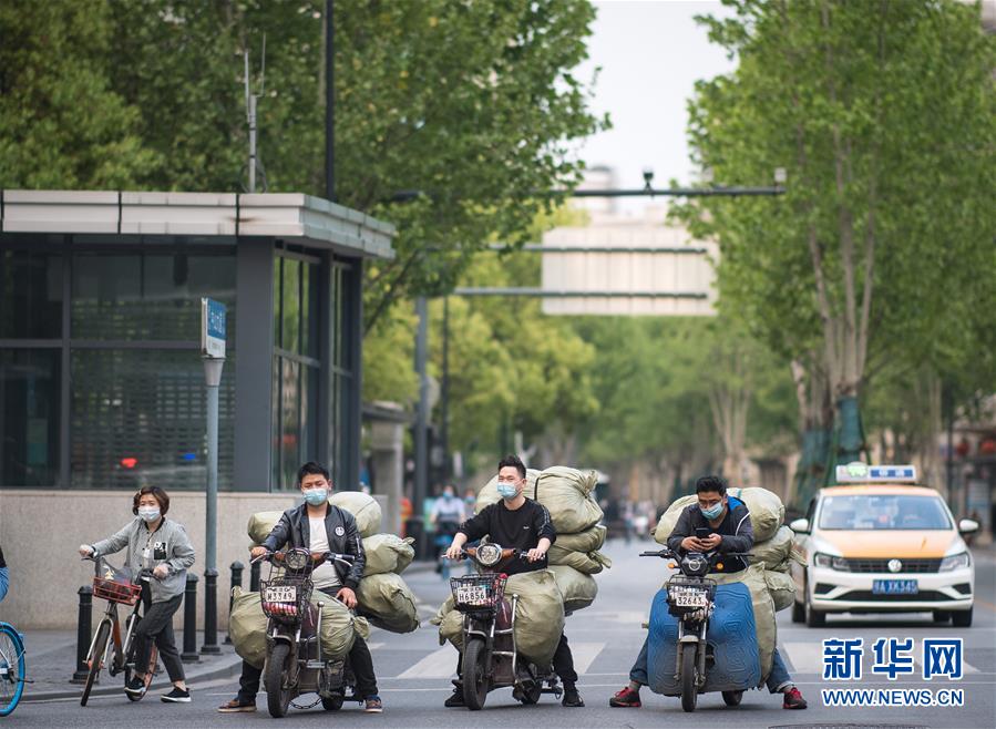 4月16日,市民在中山大道上等红灯。 随着武汉疫情防控形势好转,店铺陆续开业,人们逐步复工复产,城市活力逐渐恢复。 新华社记者 肖艺九 摄