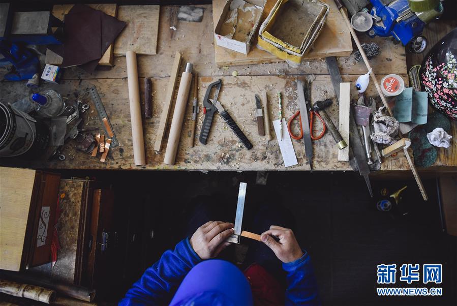 在延吉市民族乐器研究所,工人在车间内制作朝鲜族乐器和道具(4月14日摄)。新华社记者 许畅 摄