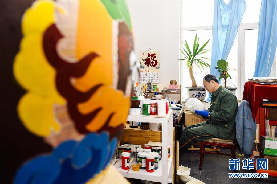 在延吉市民族乐器研究所,工人在车间内制作朝鲜族面具舞所用的面具道具(4月14日摄)。新华社记者 许畅 摄