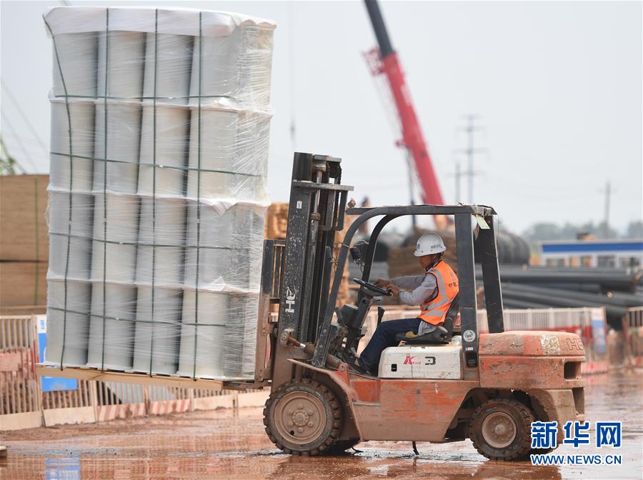 4月17日,工人在位于湖南长沙浏阳市的长沙惠科第8.6代超高清新型显示器件生产线项目主厂房施工现场作业。新华社记者 薛宇舸 摄