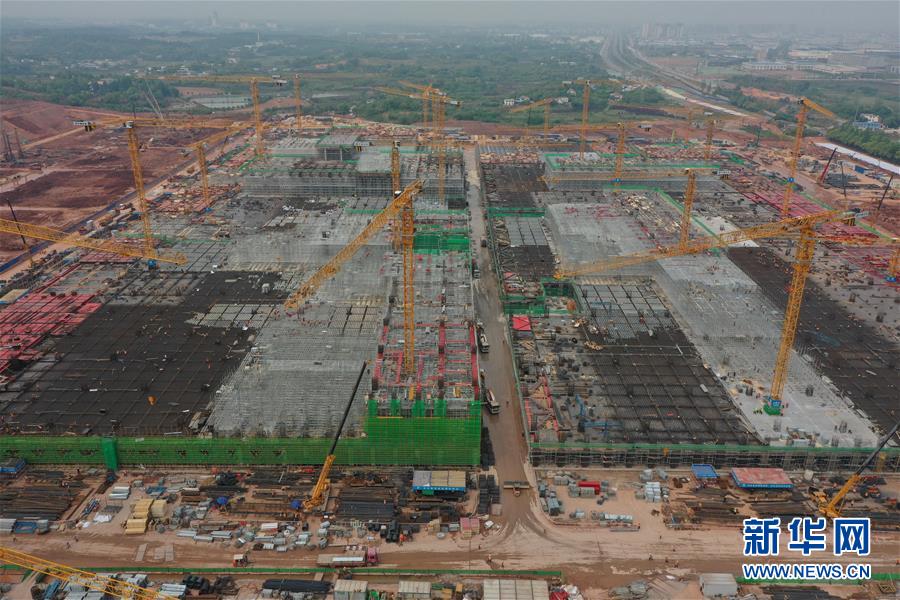 这是4月17日拍摄的位于湖南长沙浏阳市的长沙惠科第8.6代超高清新型显示器件生产线项目主厂房施工现场(无人机照片)。新华社记者 薛宇舸 摄