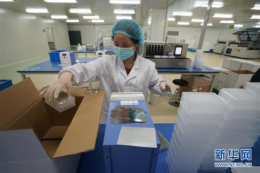 在江苏康为世纪生物科技有限公司,员工在生产病毒核酸提取试剂盒(4月16日摄)。新华社记者 季春鹏 摄