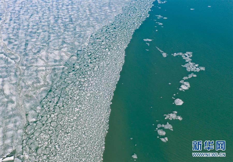 4月15日,普姆雍措开始解冻开湖(无人机照片)。 随着气温升高,位于西藏山南市浪卡子县境内的普姆雍措开始解冻开湖。普姆雍措湖边雪山围绕,融雪汇入到湖中,形成美丽的高原湖泊。 新华社记者 普布扎西 摄